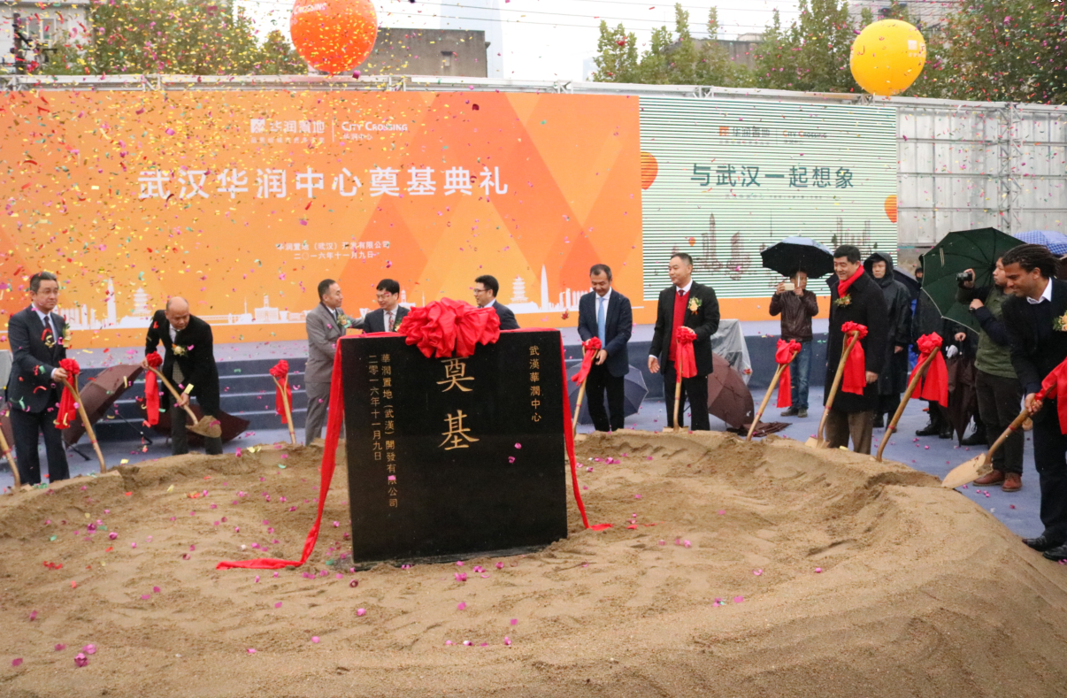 11月9日,,,,,,,,武汉华润中心项目于项目工地现场举行了奠基典礼,,,,,,,,武汉市相关领导和华润集团助理总经理吴向东、华润置地副总裁喻霖康等领导出席了奠基仪式。。。。。。。